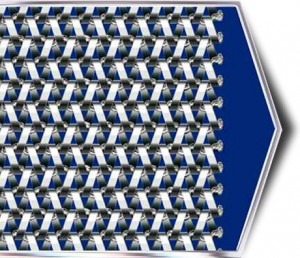 Essa esteira é fabricada com espiras laminadas direita e esquerda unidas entre si por eixos que podem ser ondulados ou retos. As laterais soldadas podem ser acopladas a correntes de tração.